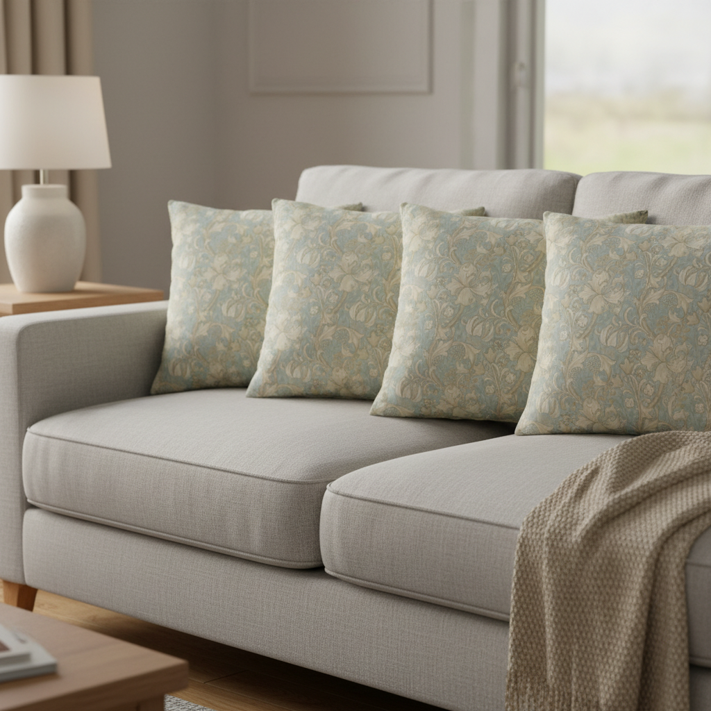 The William Morris Golden Lily Floral Pool Cushion Cover features an elegant and timeless design inspired by classic floral patterns. Showcasing intricate golden lily motifs intertwined with delicate foliage on a soft, muted pool-blue background, this cushion cover adds a touch of vintage charm and sophistication to any living space. Crafted with attention to detail, it perfectly blends traditional artistry with modern comfort.